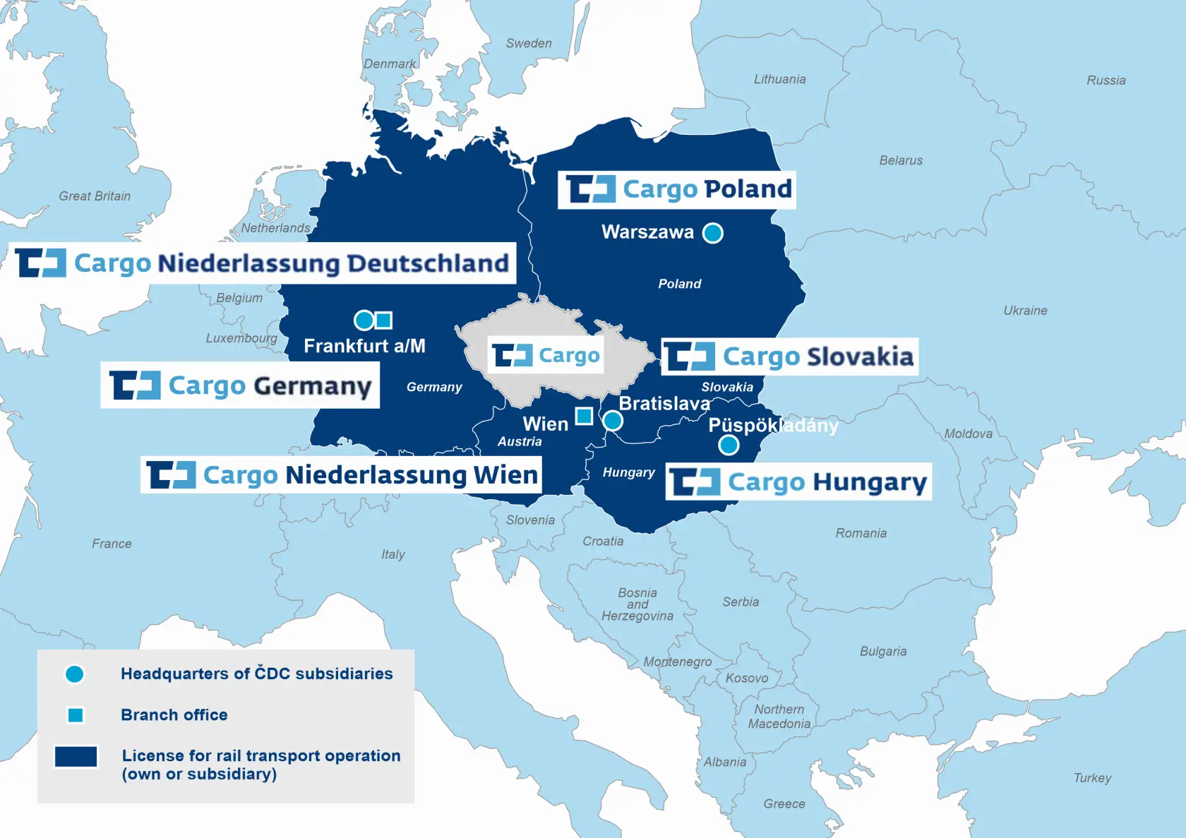 Außer in der Tschechischen Republik verfügt die ČD Cargo Gruppe über alle erforderlichen Genehmigungen für den Eisenbahnverkehr in Deutschland und Österreich sowie über ihre Tochtergesellschaften in Polen, der Slowakei und Ungarn.