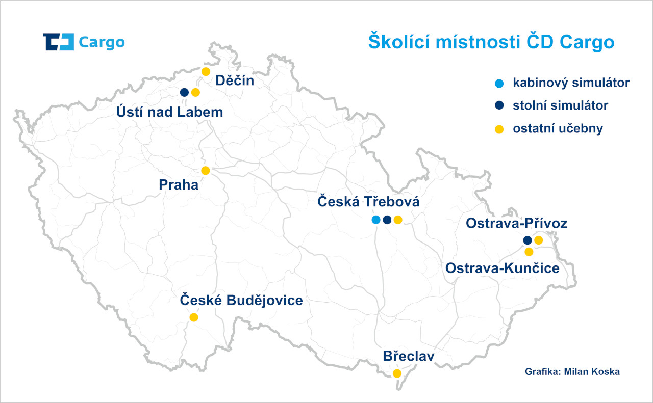 | 3. | c (1 – 10 osob) | DVI, a.s. Sadová 1250, 560 02 Česká Třebová, (Pro účely školení na kabinovém simulátoru jsou určeny prostory 1PP1.11 a 1PP1.11A) | 49.8988139N,16.4431022E |